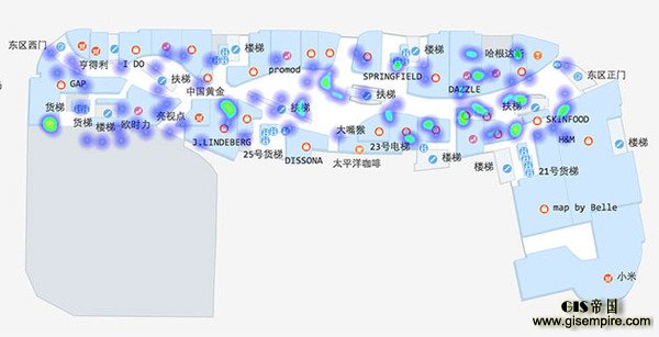 室内客流分析,也是我们慧眼产品的一项能力。如下图展示的是某个商场内部的示例客流分布数据,可为商场一些规划提供决策支持。