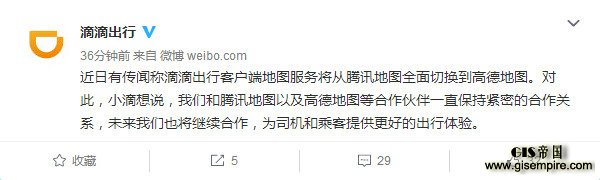 5月27日消息,近日有传闻称,滴滴出行客户端地图服务将从腾讯地图全面切换到高德地图。对此,滴滴今日回应否认了这一传闻,我们和腾讯地图以及高德地图等合作伙伴一直保持紧密的合作关系,未来我们也将继续合作,为司机和乘客提供更好的出行体验。 在获得苹