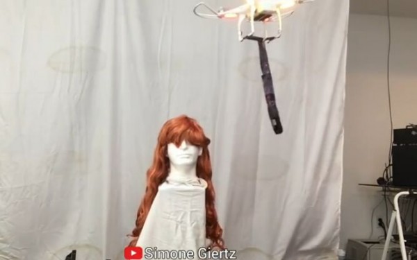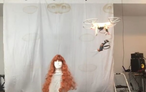 视频中可见,实验刚开始的时候,无人机嗡嗡作响,似乎要实现历史性的一剪,可是电动剃刀连一丝头发都没碰到。二人并未气馁,又换了把超级锋利的园林剪刀,可依旧未能成功。这次实验最大的突破应该就是剪刀碰到了假发吧。不过,他们二人至少为观看者带来了欢乐。