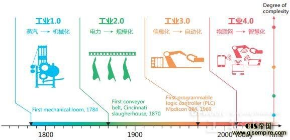 从工业发展的历程来看,蒸汽机技术推动机械化生产的普及,使人类社会进入工业1.0时代;电力的出现推动规模化生产,从此工业进入2.0时代;信息化技术的应用,使得自动化生产成为可能,工业进入3.0时代;而物联网等新技术与工业技术的深度融合,使得工业进入智慧化的时代,即工业4.0。工业4.0是在个性化智能产品的需求驱使下,并在以物联网、大数据等新技术的有力支撑下,出现的新一代变革趋势。
