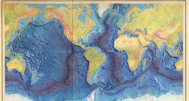 关于“大陆漂移说”,这一理论真正的奥秘并非存在于这些移动的大陆之下,而是隐藏于海洋之下。美国女地质学家玛丽-萨普就是最早发现这一秘密的科学家之一。她意识到,山脉和峡谷等地形特征并非只有陆地上有,海底同样存在。1950年代,萨普等人绘制了全球海底地图,地图显示了著名的大西洋中脊。其实,在其它大洋底下也同样存在类似的山脊。自此以后,这些海底山脊被命名为“洋中脊”。