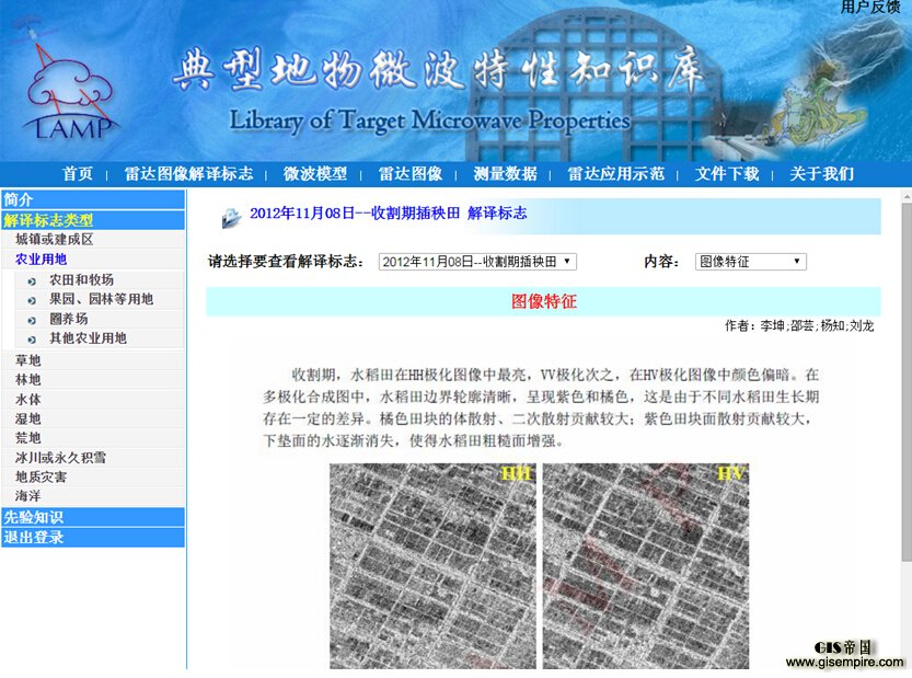 中国科学院遥感与数字地球研究所8月8日对外发布了“典型地物微波特性知识库(简称LAMP)”,这是目前国内微波遥感领域首个基于WEB发布的知识库。
