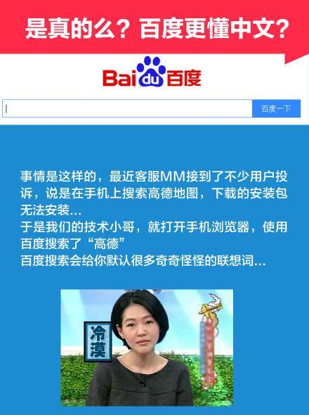 2015年11月27日,高德地图在微博上发表声明,指责百度通过修改关键词,错误提示等方式,引导用户下载错误的app导致系统崩溃。