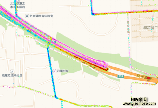 通过这些彩色线条,提示城市路网形状清晰可见。通过大数据就能实现新路发现、老路清除、交通规制信息变化识别、园区内部路发掘,以及道路通行等级判断等多维度的数据更新,人工采集测绘的工作量可以大大减少。