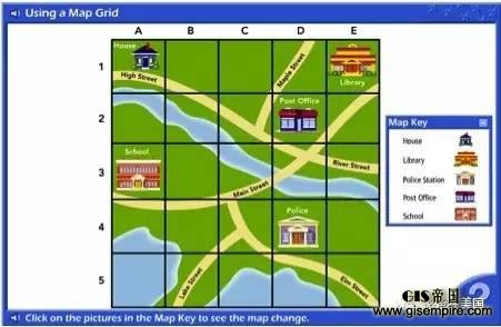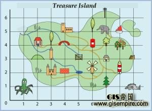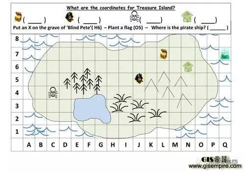 在这种坐标下,横轴和纵轴交合的方块代表一个区域,比如A1表示一个房子,A3表示一所学校等等。