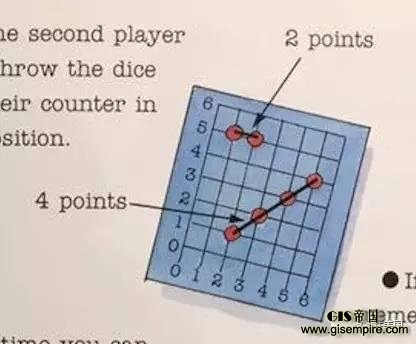 2。 游戏支持两个玩家,第一个玩家开始扔骰子,比如TA得到的点数是2和4,那么TA可以选择将棋子放在 (2, 4) 或者 (4, 2) 上面。
